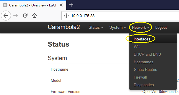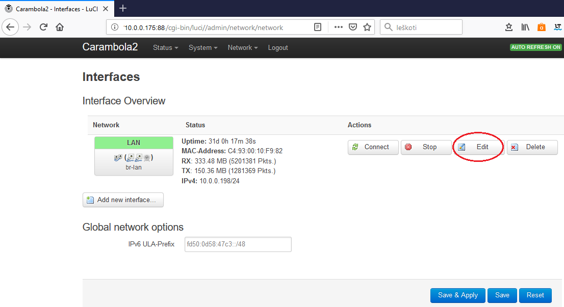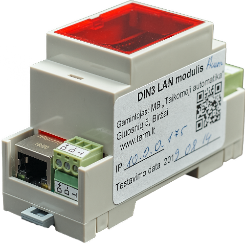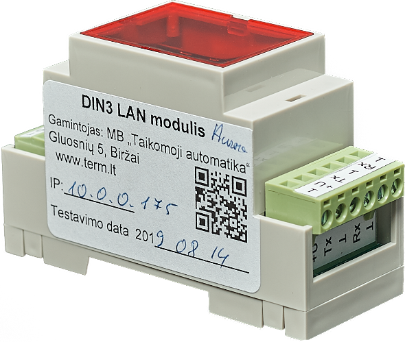 Gamyklinis Lan modulio IP adresas yra 10.0.0.175. Administravimo portas yra 88. Norint pakeisti IP adresą reikia kompiuterį sujungti su moduliu ethernet kabeliu bei pasikeisti kompiuterio Lan prievado IP adresą į 10.0.0.10 (arba kitą adresą iš šio potinklio). Interneto naršyklėje renkame adresą 10.0.0.175:88