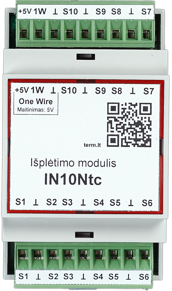 DIN3 valdiklių serija skirta dirbti su skaitmeniniais DALLAS temperatūros davikliais DS18B20 (palaiko ir senus mažesnio tikslumo DS18S20), kurie jungiasi trilaide vytos poros linija. Tačiau yra objektų, kuriuose paklota dvilaidė instaliacija, arba jau sumontuoti seno tipo analoginiai NTC davikliai ir nėra galimybės jų pakeisti. Taipogi komunikacija su analoginiais NTC davikliais labiau atspari  trukdžiams nuo įvairios pramoninės įrangos. Kad būtu galima pajungti tokius seno tipo analoginius NTC daviklius prie valdiklio, buvo sukurtas išplėtimo modulis IN10Ntc.